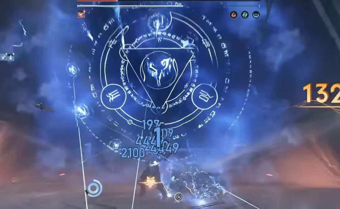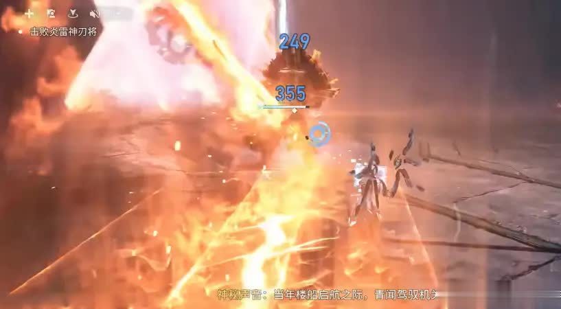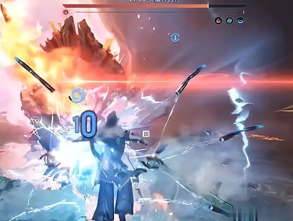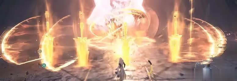 打完开始红光技,锁定一名玩家冲刺攻击,冲到第三次没有解决掉红光的化解会有雷光撕裂空间,雷形态演出机制召唤飞剑锁定攻击,很好躲。